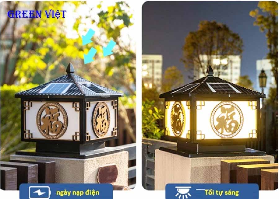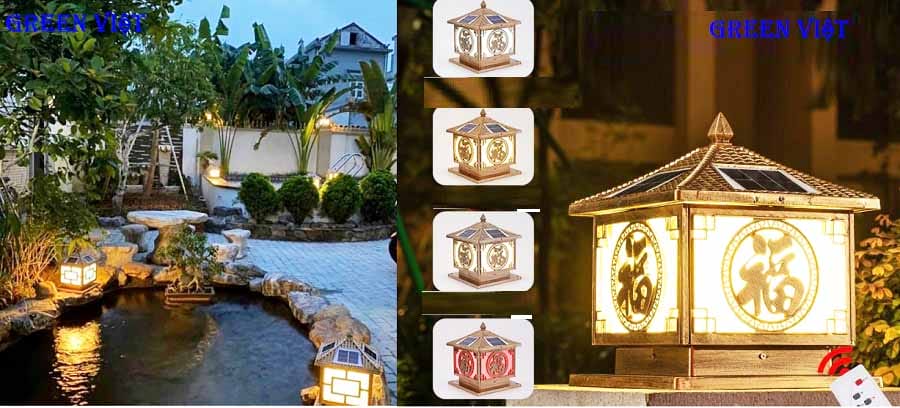 Đèn Trụ Cổng Năng Lượng Mặt Trời Solar Green Việt: Được biết đến với thiết kế sang trọng, ánh sáng mạnh mẽ và khả năng chống nước tốt.