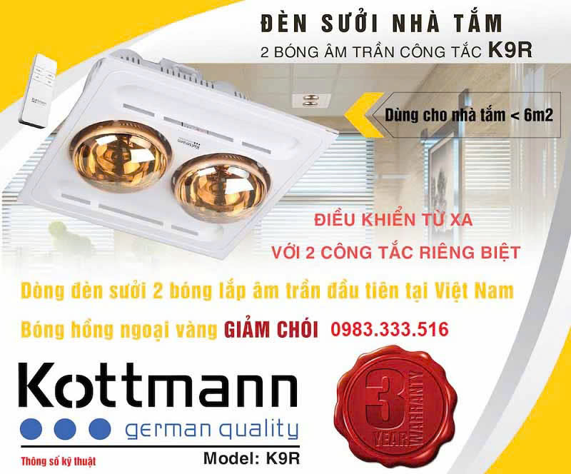 - Đèn sưởi nhà tắm cao cấp từ các thương hiệu như Hans, Kottmann được trang bị tính năng chống nước, chống cháy nổ.