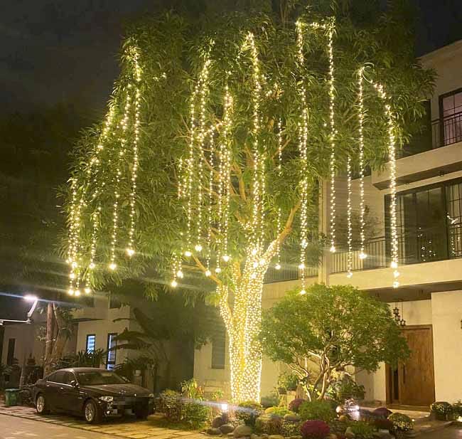 - Dây LED F5-2025 lý tưởng cho việc quấn quanh cây cối trong sân vườn, tạo nên một không gian lung linh, lãng mạn vào ban đêm. Bạn có thể sử dụng các màu sắc khác nhau để tạo điểm nhấn cho từng loại cây, khiến không gian trở nên độc đáo và thu hút mọi ánh nhìn.