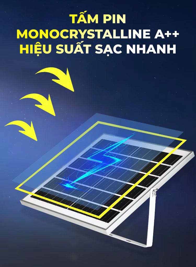 • Hiệu suất chuyển đổi cao, sạc nhanh ngay cả khi trời nắng yếu.