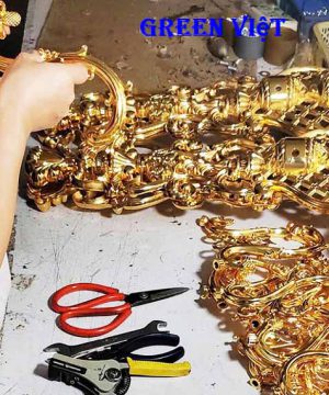 - Khung đèn: Khung Thân được làm bằng đồng, bền, đẹp. Khung đèn được khéo léo mạ một lớp vàng bên ngoài. Với mẫu đèn chùm DGV01 giúp làm tăng độ sang trọng của toàn thể chiếc đèn chùm.
