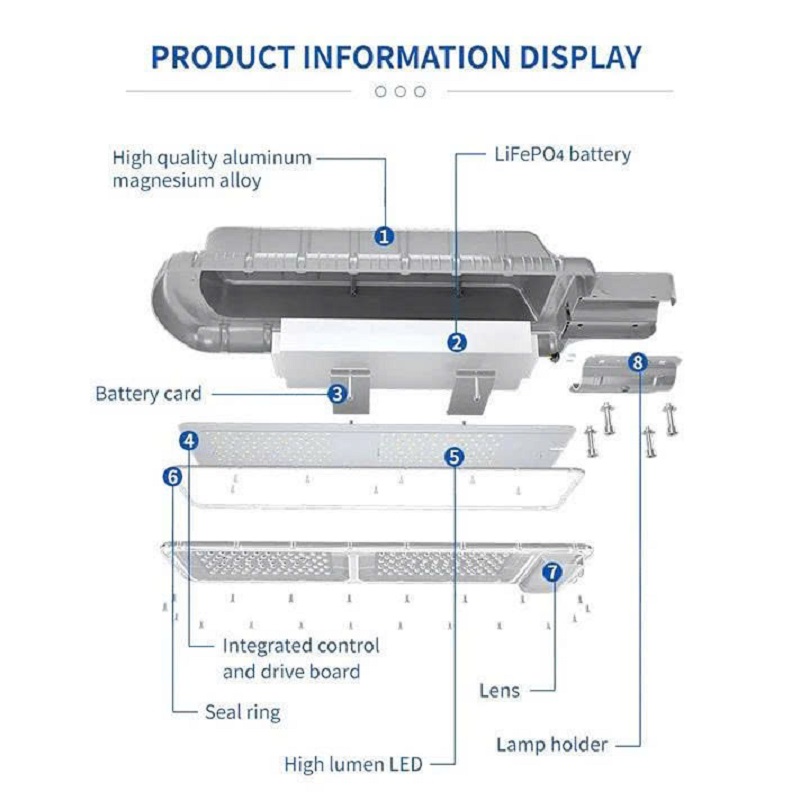 Với tiêu chuẩn chống thấm IP65 và khả năng chống va đập IK08, Đèn đường năng lượng mặt trời 56W 2.0B Plus có thể hoạt động trong mọi điều kiện thời tiết khắc nghiệt, từ mưa lớn đến ánh nắng gắt. Điều này giúp sản phẩm duy trì hiệu suất chiếu sáng ổn định trong suốt thời gian dài.