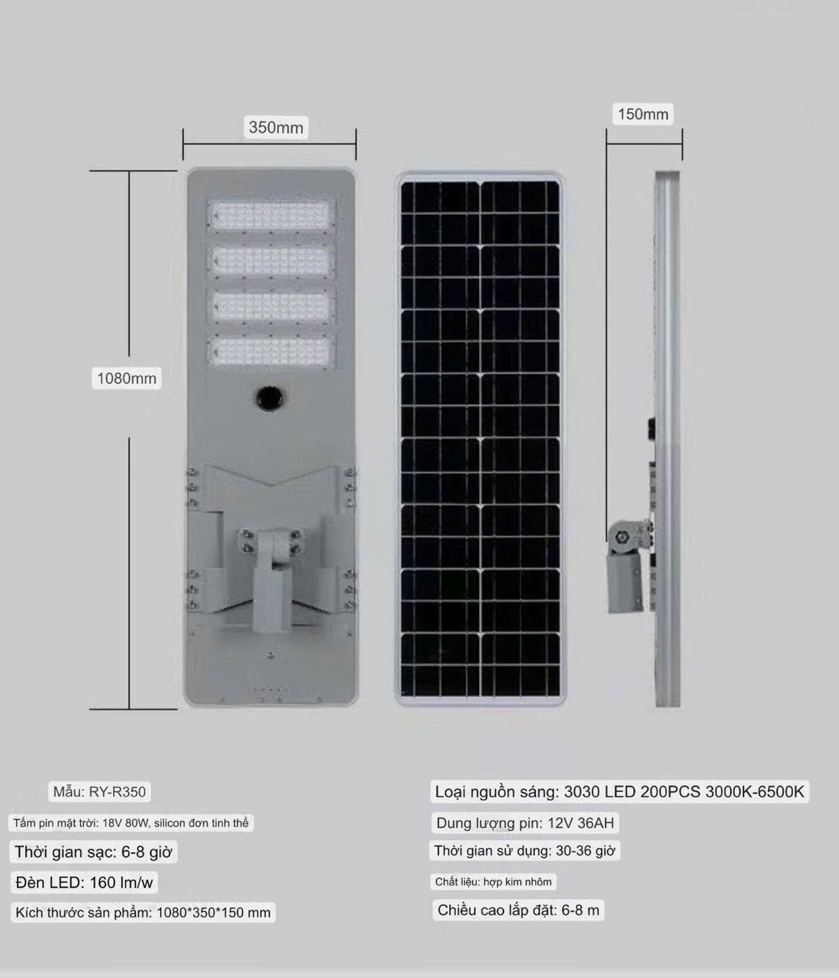 ĐÈN ĐƯỜNG NĂNG LƯỢNG MẶT TRỜI RY-R350 – GIẢI PHÁP CHIẾU SÁNG THÔNG MINH, BỀN BỈ CHO MỌI CÔNG TRÌNH.