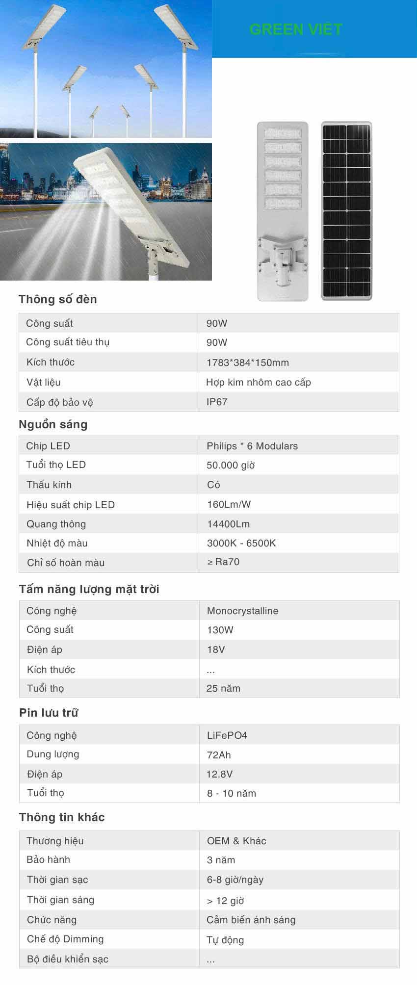 Thông số kỹ thuật chi tiết – Đèn Đường Solar Light 90W SLV90