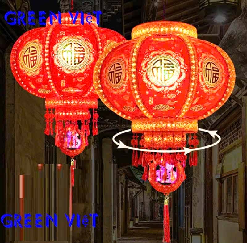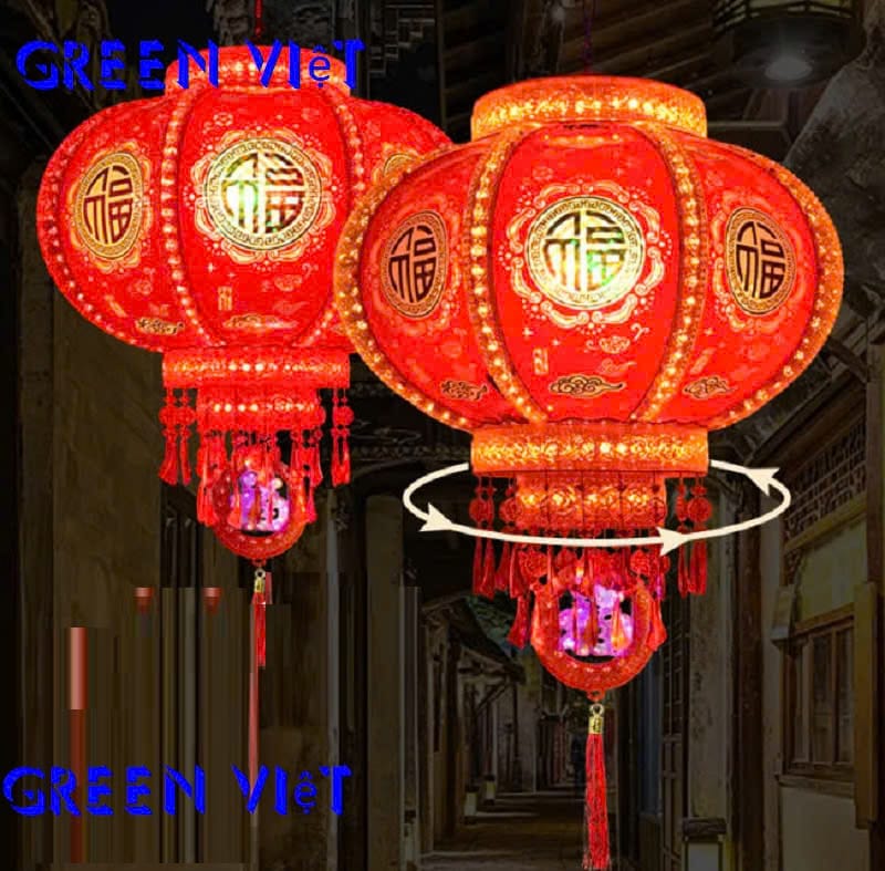 Đèn lồng xoay LED điện nhiều màu sắc dát vàng mang may mắn ngày Tết DLX06