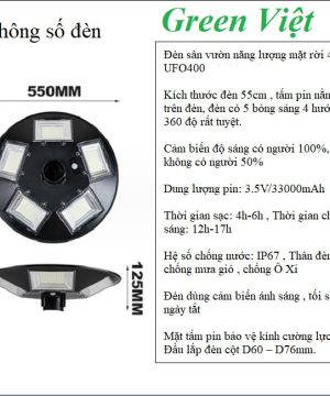 Thông số đèn năng lượng mặt trời 400W Green Việt