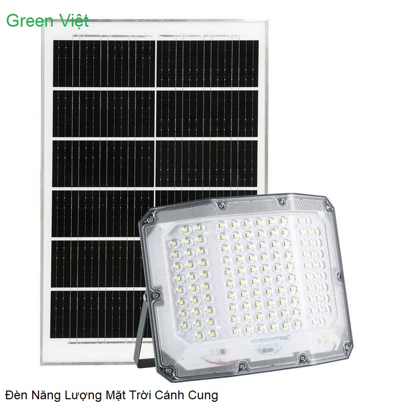 Đèn năng lượng mặt trời 200W PLV200 cánh cung (hay còn gọi là đèn pha LED năng lượng mặt trời, đèn đường năng lượng mặt trời hình cánh cung) là loại đèn sử dụng năng lượng mặt trời, có thiết kế tấm pin rời, dùng để chiếu sáng đường phố, sân vườn, công trình, hoạt động tự động nhờ cảm biến ánh sáng, tiết kiệm điện và thân thiện môi trường. Các thương hiệu phổ biến Green Việt