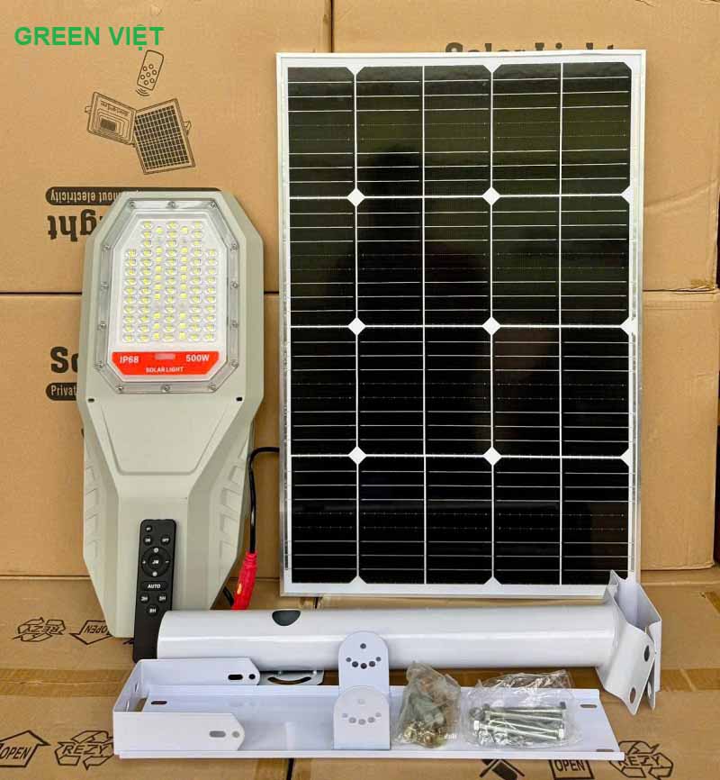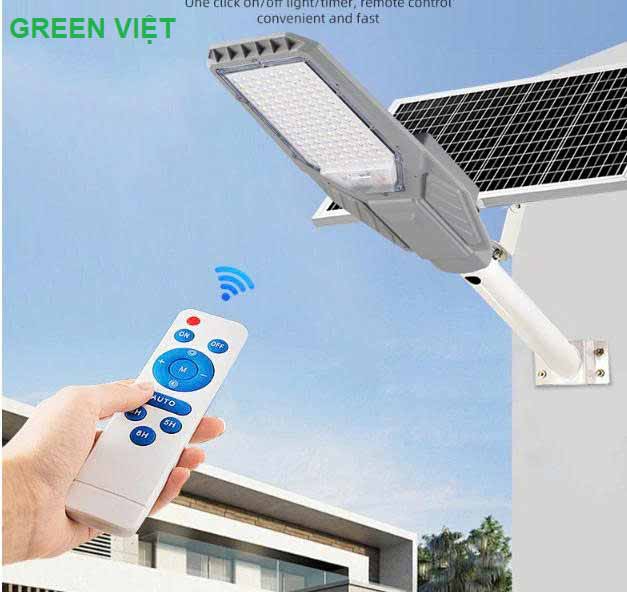 | Phụ kiện đi kèm | 1 đèn + 1 tấm pin NLMT + Giá đỡ tấm pin + Ốc vít + Remote |