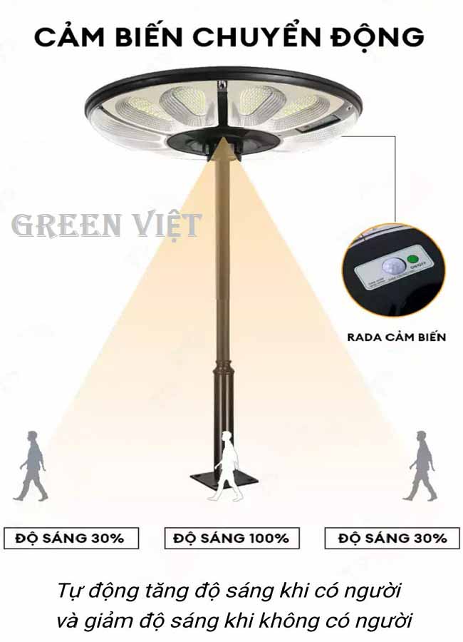 Đèn Năng Lượng Mặt Trời UFO 800W Siêu Sáng U800 là giải pháp chiếu sáng ngoài trời hiện đại, đáp ứng tốt nhu cầu tiết kiệm điện và nâng cao an ninh. Sản phẩm sở hữu thiết kế UFO gọn gàng, thẩm mỹ cao, dễ dàng lắp đặt trên cột đèn tại sân vườn, lối đi, bãi xe hay khu dân cư. Nhờ ứng dụng công nghệ đèn năng lượng mặt trời, U800 hoạt động hoàn toàn bằng ánh nắng, không cần kéo dây điện, giảm chi phí vận hành lâu dài.
