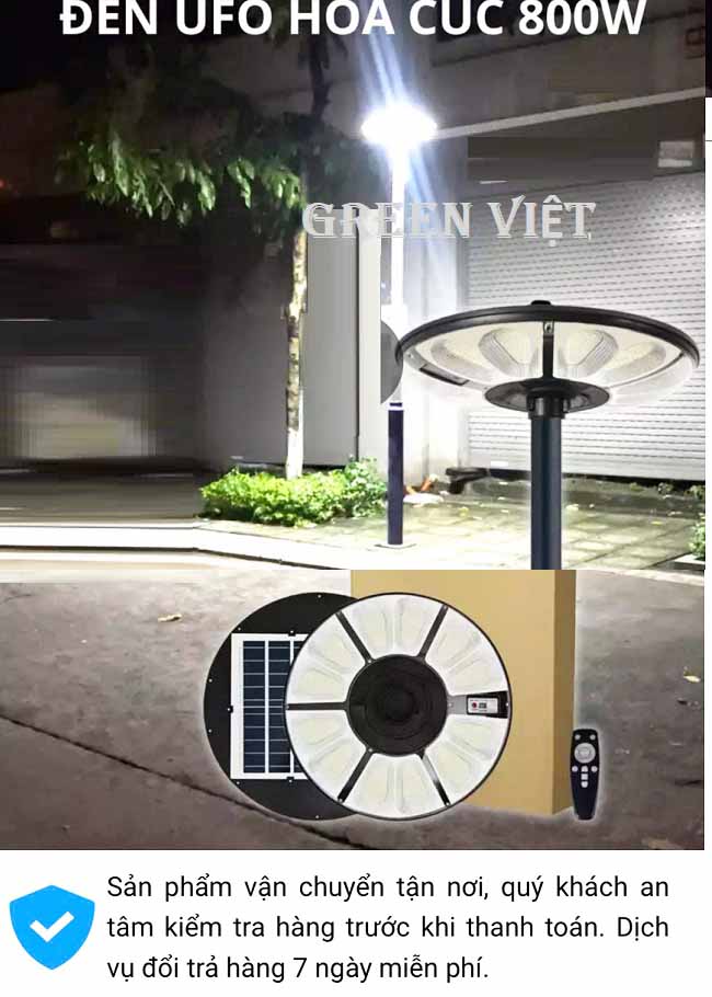 Với khả năng chiếu sáng mạnh mẽ, tiết kiệm năng lượng và dễ dàng lắp đặt, Đèn Năng Lượng Mặt Trời UFO 800W U800 là sự lựa chọn lý tưởng cho các không gian ngoài trời như sân vườn, công viên, đường phố, hay các khu vực công cộng cần ánh sáng hiệu quả mà không tốn chi phí điện năng.