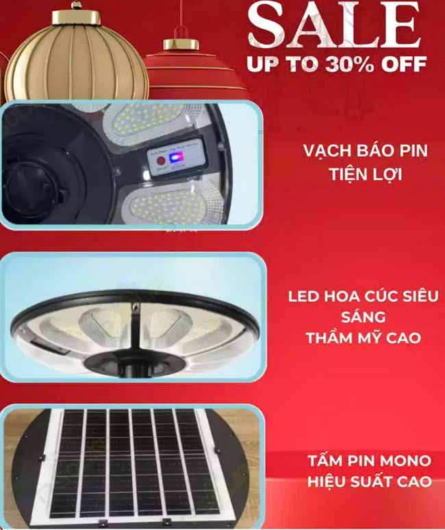 Đèn Năng Lượng Mặt Trời UFO 800W Siêu Sáng U800 là lựa chọn hoàn hảo cho nhu cầu chiếu sáng ngoài trời hiện đại, an toàn và tiết kiệm. Với ánh sáng mạnh mẽ, cảm biến thông minh, pin dung lượng lớn và tuổi thọ bền bỉ, sản phẩm đảm bảo chiếu sáng ổn định suốt đêm mà không tốn chi phí điện. Thiết kế UFO sang trọng, lắp đặt nhanh chóng, phù hợp nhiều không gian từ sân vườn đến khu dân cư. Đầu tư đèn năng lượng mặt trời hôm nay để nâng cao an ninh, tối ưu chi phí và tận hưởng giải pháp chiếu sáng xanh bền vững lâu dài.