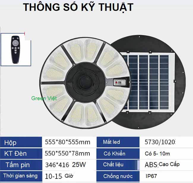 Thông số kỹ thuật: Đèn năng lượng mặt trời UFO 800W