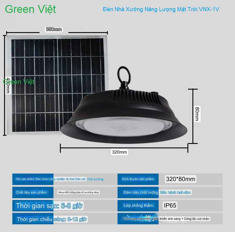 • Tên sản phẩm: Đèn Nhà Xưởng Năng Lượng Mặt Trời VNX-1V