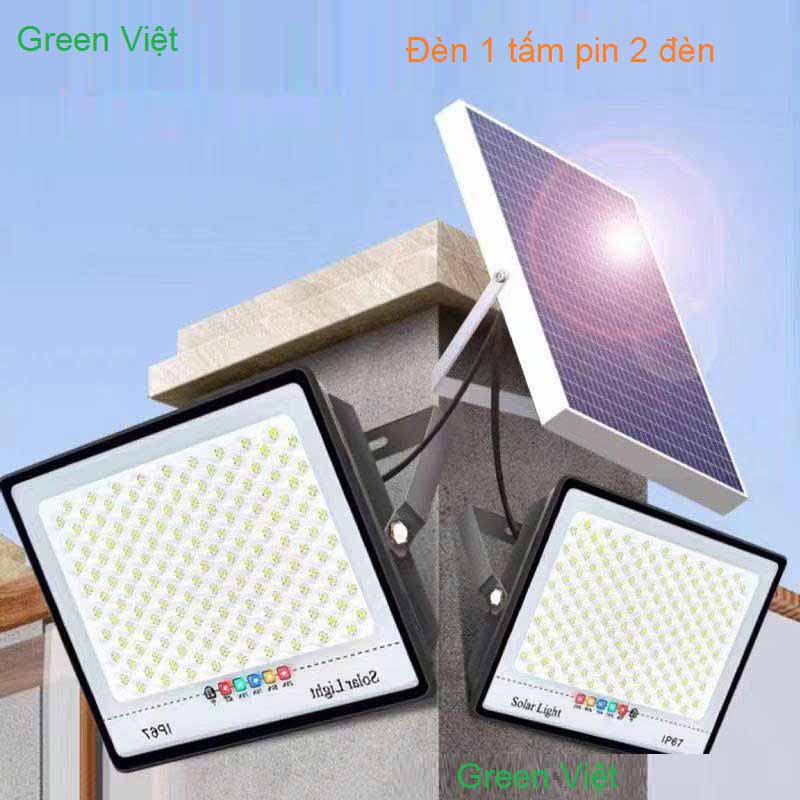 Đèn Pha Năng Lượng Mặt Trời 1 Tấm Pin 2 Đèn V2B 100W