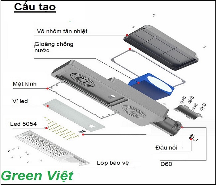 ⭐ 1. Cấu tạo của đèn Solar Light 150W DCD-150