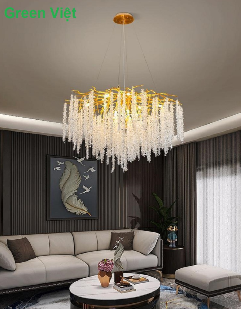 - Phong cách: Luxury hiện đại, phù hợp cho không gian cao cấp như phòng khách, phòng ăn, sảnh biệt thự, khách sạn.