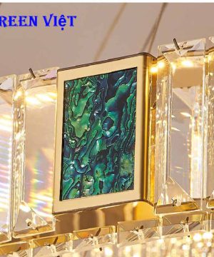 – Chất liệu: Pha lê cao cấp, hợp kim mạ vàng.