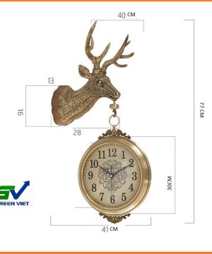 Đồng hồ đồng trang trí cao cấp DHDTT.09 decor đầu hươu hai mặt