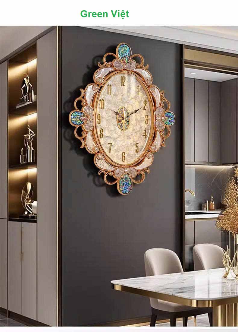 Đồng Hồ Trang Trí DHVG16 là lựa chọn hoàn hảo dành cho những ai yêu thích không gian sống tinh tế, sang trọng và mang dấu ấn nghệ thuật. Sản phẩm thuộc dòng đồng hồ decor DHVG16 cao cấp của Green Việt, nổi bật với chất liệu khảm trai tự nhiên kết hợp hợp kim cao cấp chống gỉ, tạo nên vẻ đẹp lấp lánh và bền bỉ theo thời gian.