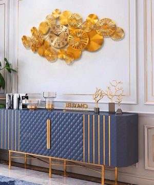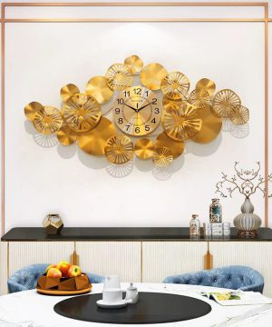 Đồng hồ trang trí mang hồn Việt hoa sen – Đồng hồ nghệ thuật lá sen vàng quý tộc GV36