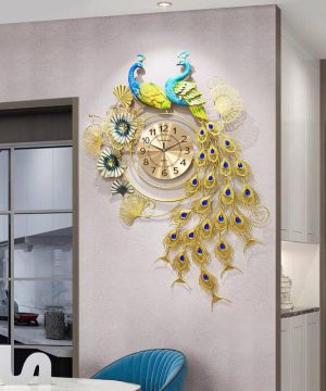 Đồng hồ trang trí nghệ thuật chim công K2921