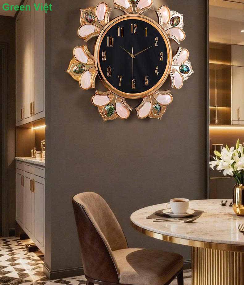 Đồng Hồ Treo Tường DHVG15 – Decor Nội Thất Cao Cấp không chỉ là một vật dụng xem giờ đơn thuần. Đây là một kiệt tác nghệ thuật, được chế tác từ chất liệu khảm trai tự nhiên và hợp kim cao cấp, mang phong cách tân cổ điển đầy sang trọng. Với thiết kế quy mô – chế độ bảo hành 3 năm – dịch vụ tận tâm từ Green Việt, sản phẩm xứng đáng trở thành điểm nhấn hoàn hảo cho mọi không gian