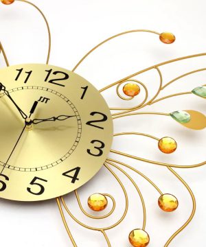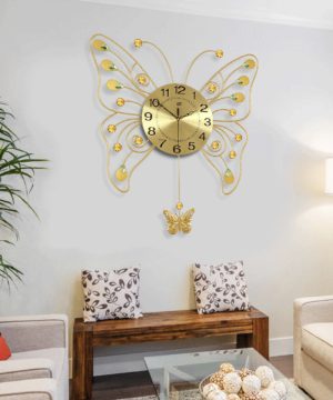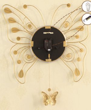 Đồng hồ treo tường nghệ thuật phòng ngủ con bướm vàng tài lộc gvt1504