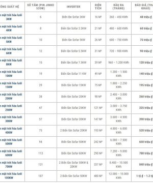5. Báo giá lắp đặt điện mặt trời hệ 3KW trở lên cho hộ gia đình