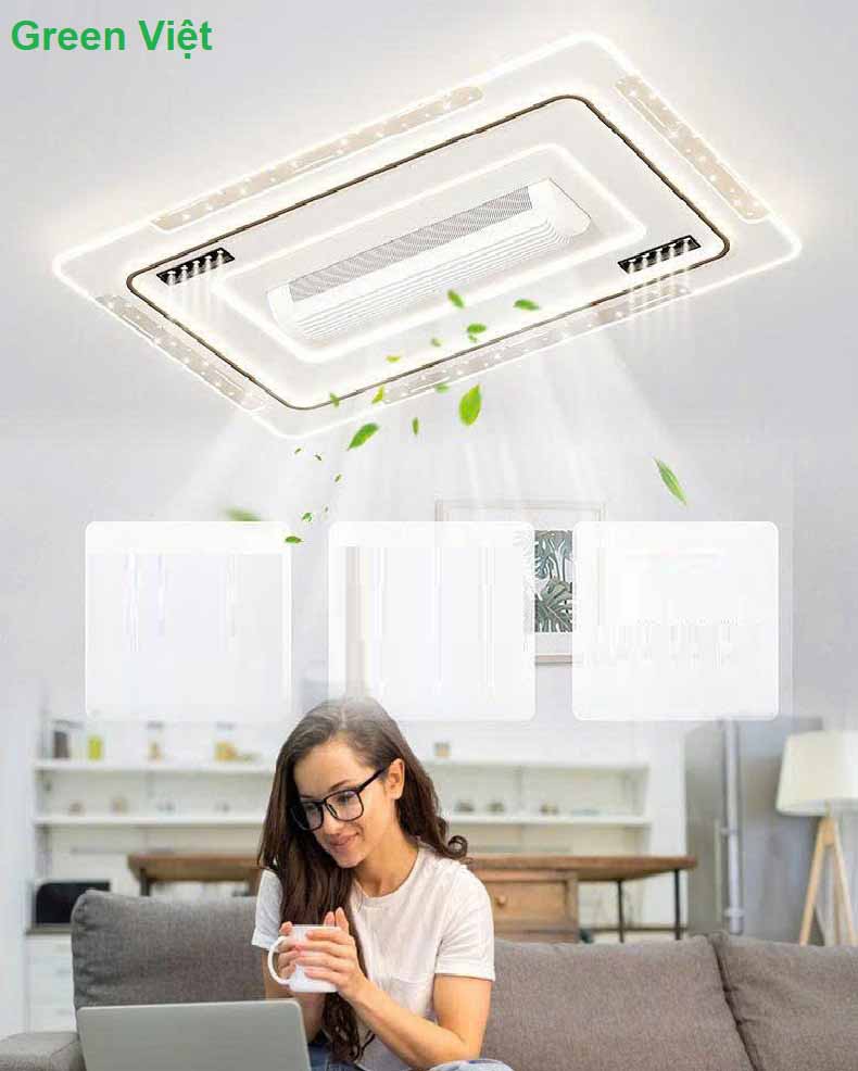 • An toàn tuyệt đối: quạt không cánh, không rung lắc, không ảnh hưởng đến trần thạch cao.