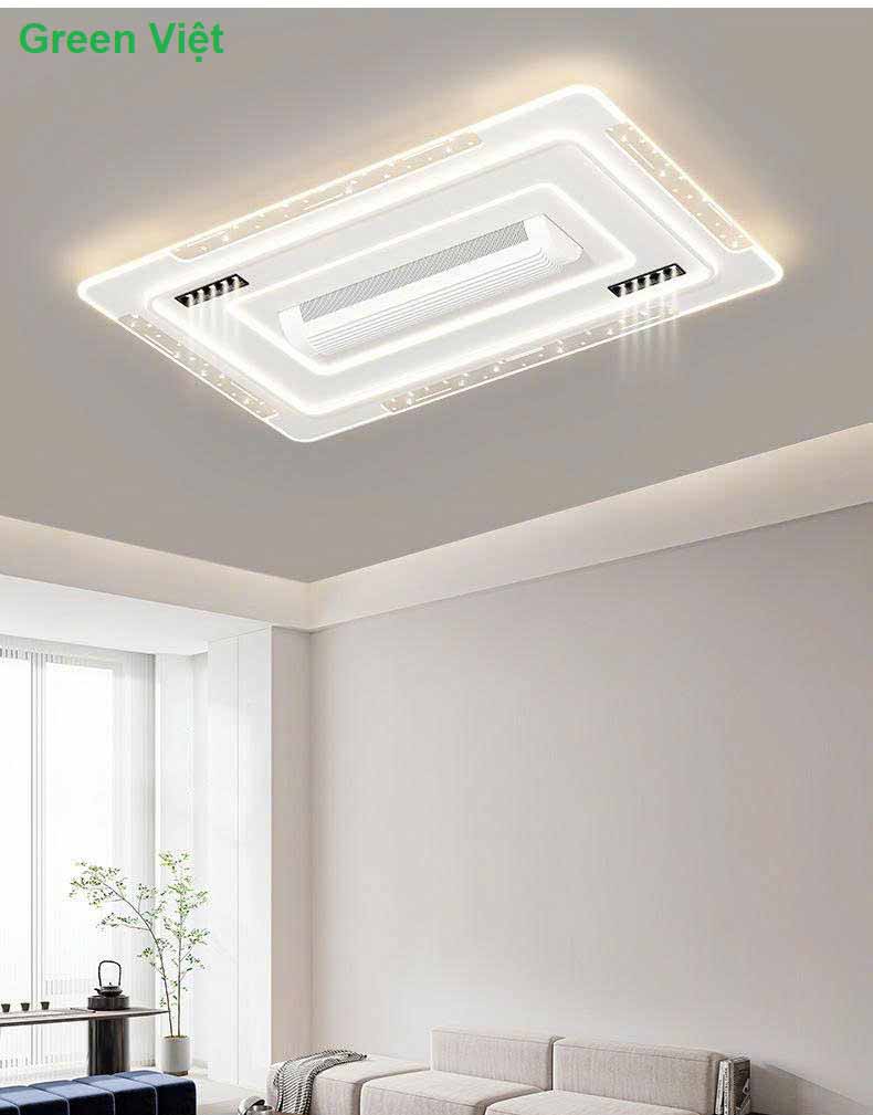 Phòng khách: Tạo luồng gió nhẹ nhàng, kết hợp ánh sáng tinh tế, giúp không gian tiếp khách thêm đẳng cấp.