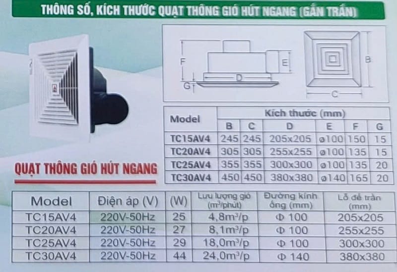2. Thông số Quạt Thông Gió Tico TC-15AV4