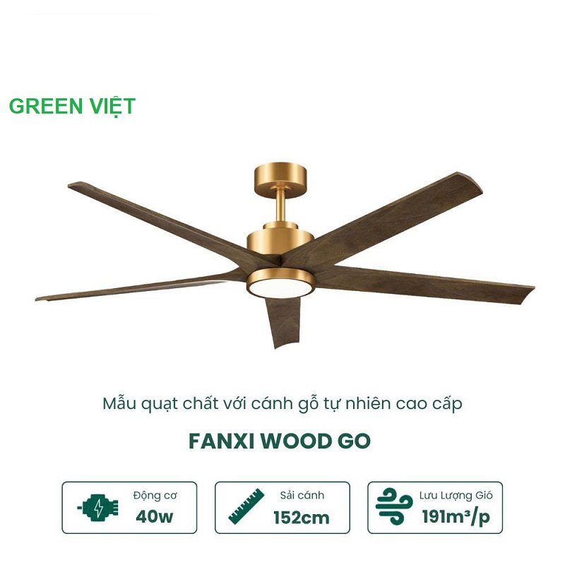 Cánh quạt 5 cánh gỗ tự nhiên. Sải cánh 152cm