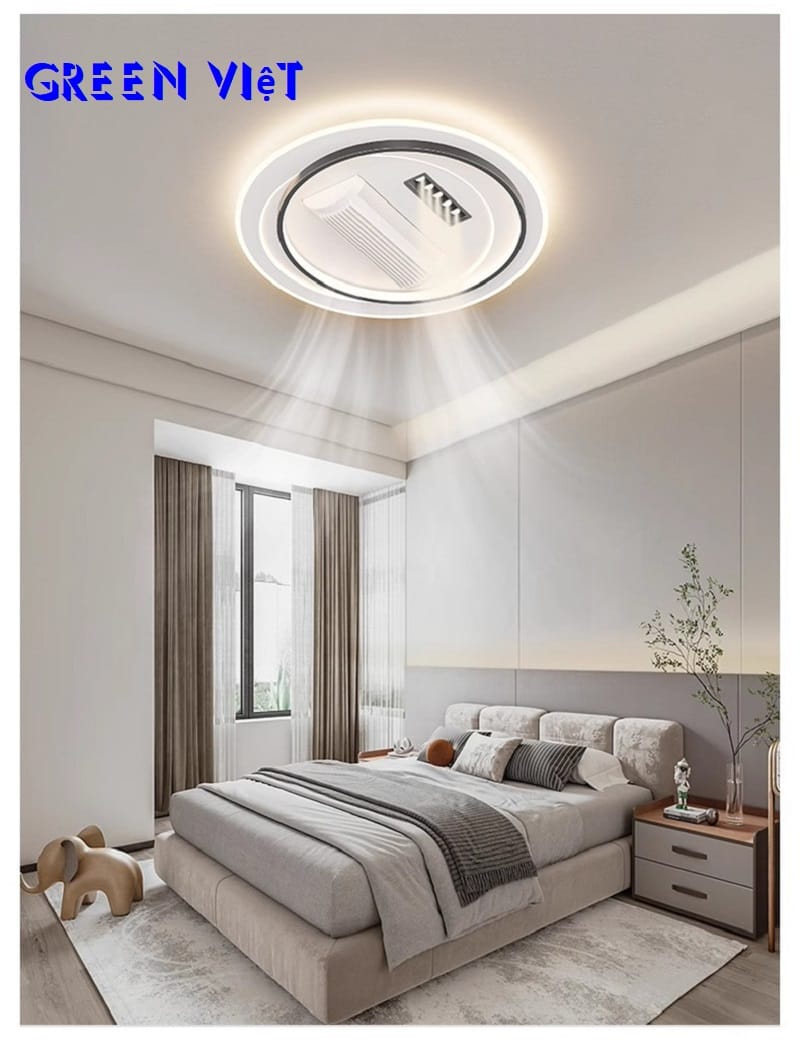 - Đi kèm remote điều khiển từ xa, dễ dàng thao tác bật/tắt, thay đổi tốc độ quạt và chế độ đèn mà không cần di chuyển.