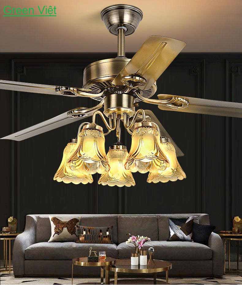 Quạt trần Đèn led trang trí cao cấp GV 105.5 – Quạt trần cánh sắt cao cấp