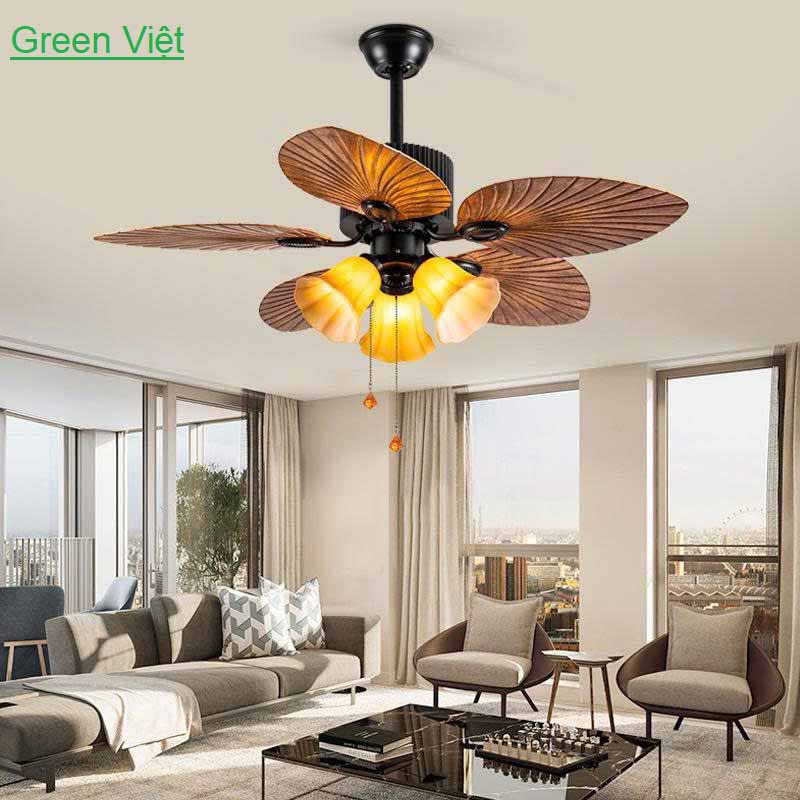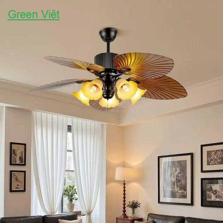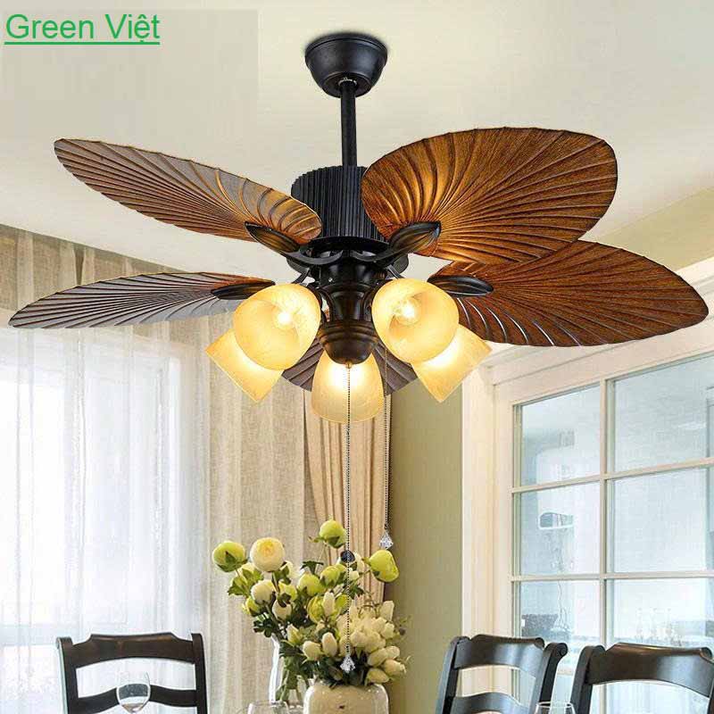 Quạt Trần Đèn QC05 Hình Lá Cọ – Sang Trọng, Tiết Kiệm Điện, Tạo Điểm Nhấn Không Gian