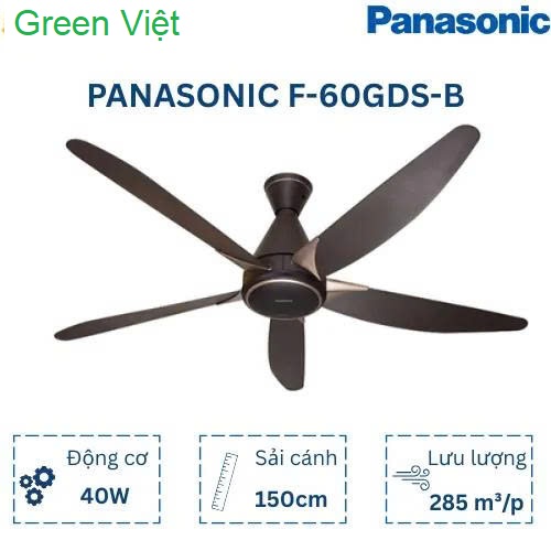Quạt trần Panasonic 5 cánh F-60GDS B màu nâu – Thiết kế sang trọng, động cơ DC tiết kiệm điện