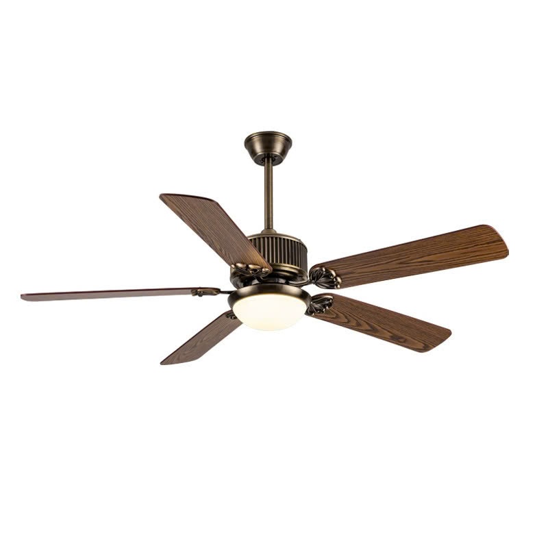 Quạt trần trang trí có đèn led cánh giả gỗ phòng khách QT5201